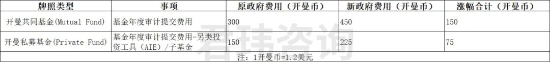 本次费用上调主要针对受CIMA监管的共同基金(Mutual Funds)及私募基金(Private Funds),具体调整如下:
